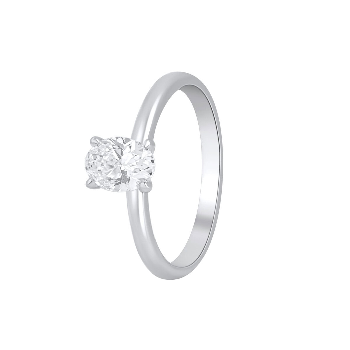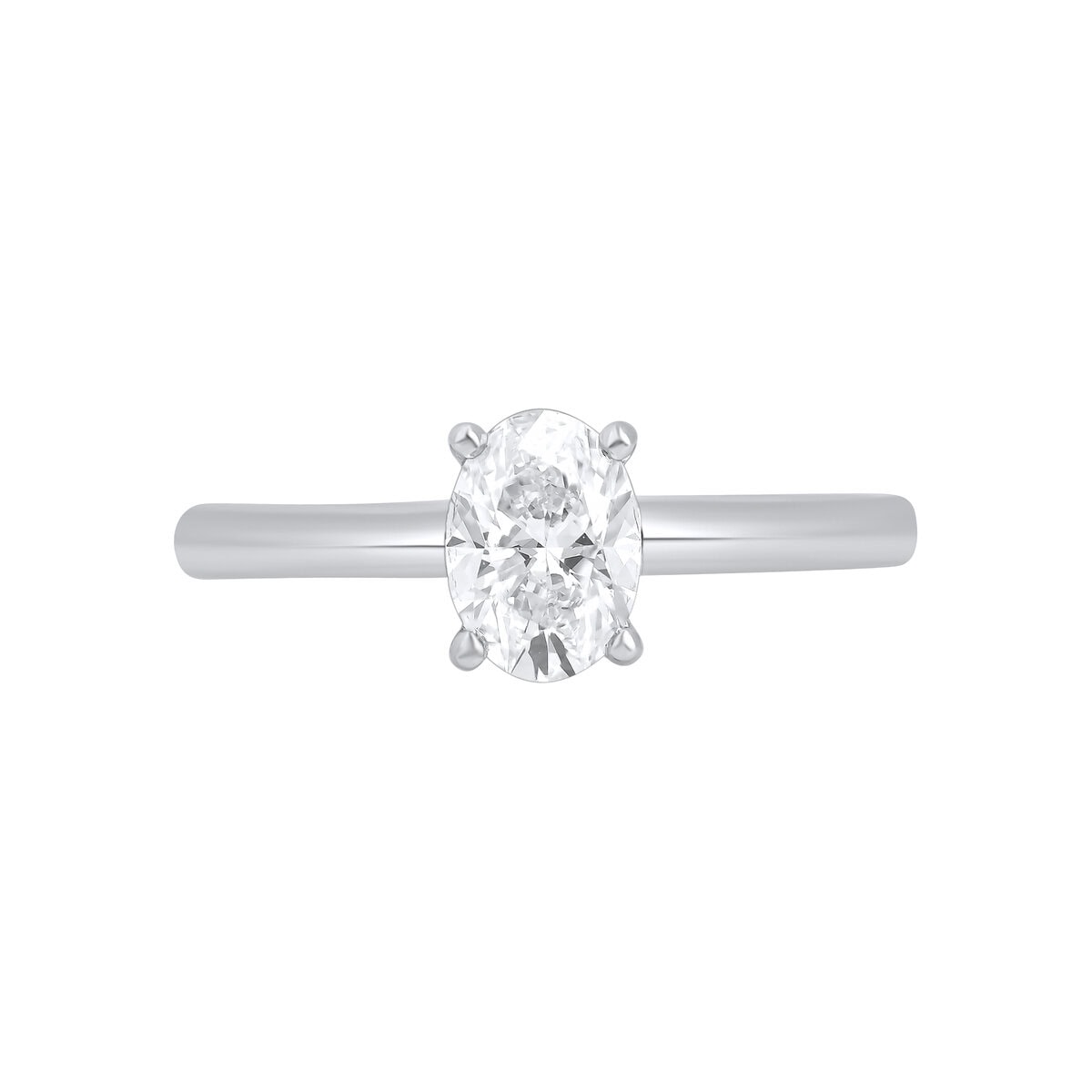 A luxurious 585 white gold engagement ring featuring a 0.91-carat oval-shaped lab-grown diamond –