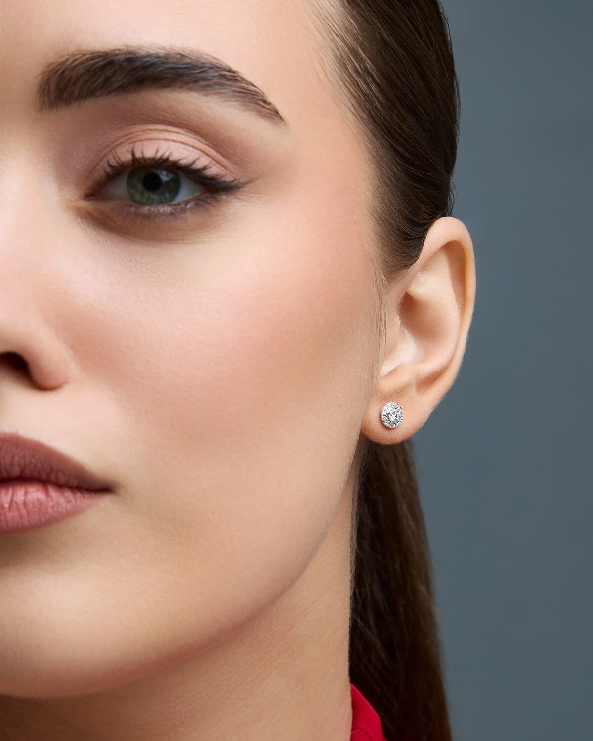 0.31 karato The Allure auskarai su laboratorijoje išaugintais deimantais, balto aukso, šoninis vaizdas0.30 karato „The Allure“ auskarai su deimantais ant modelio