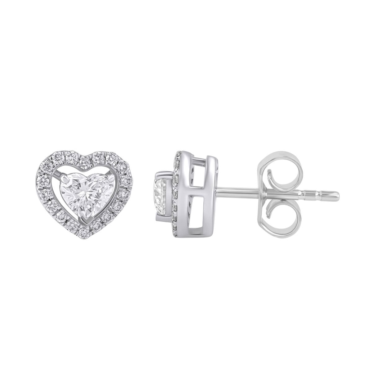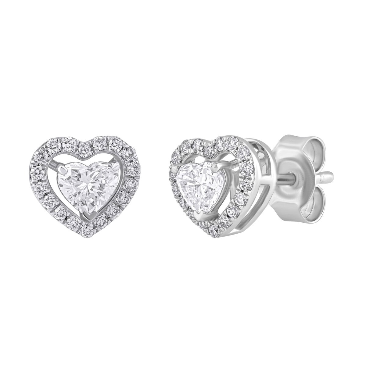 Sukurti iš balto aukso (585 prabos), jie išsiskiria centriniais širdies formos deimantais (0.54 ct, E–F spalva, VVS–VS skaidrumas), apsuptais spindinčių apvalių laboratorinių deimantų halo (0.18 ct).