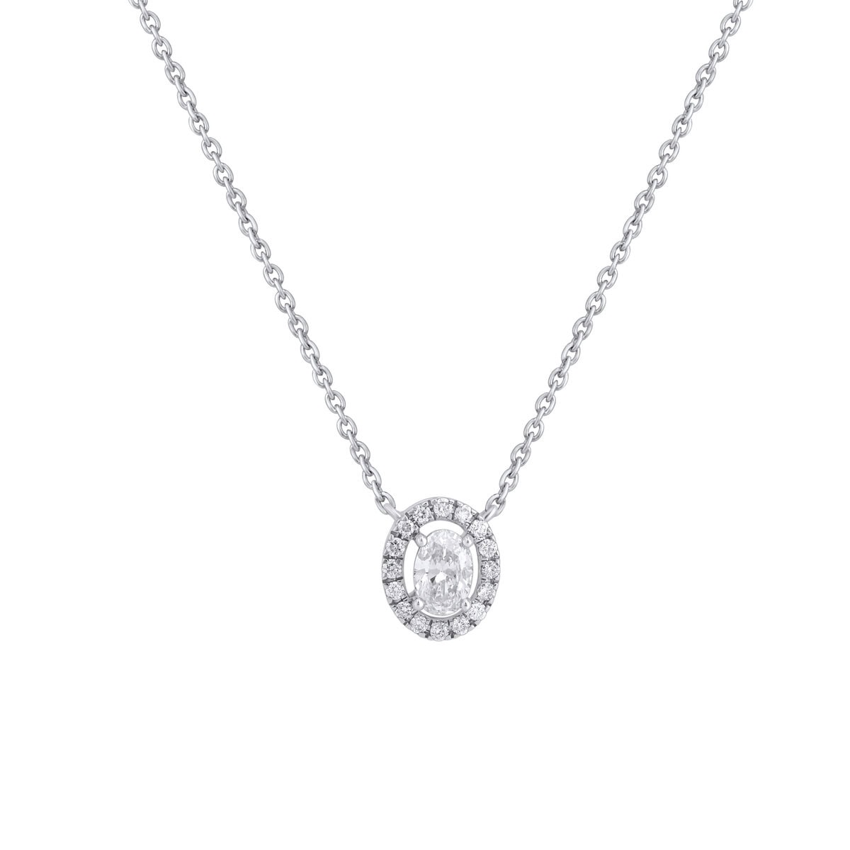 Subtilus dizainas pabrėžia kaklo liniją, o ovalo formos deimantas suteikia šviesos ir išraiškingumo – tai papuošalas, kuris neliks nepastebėtas.