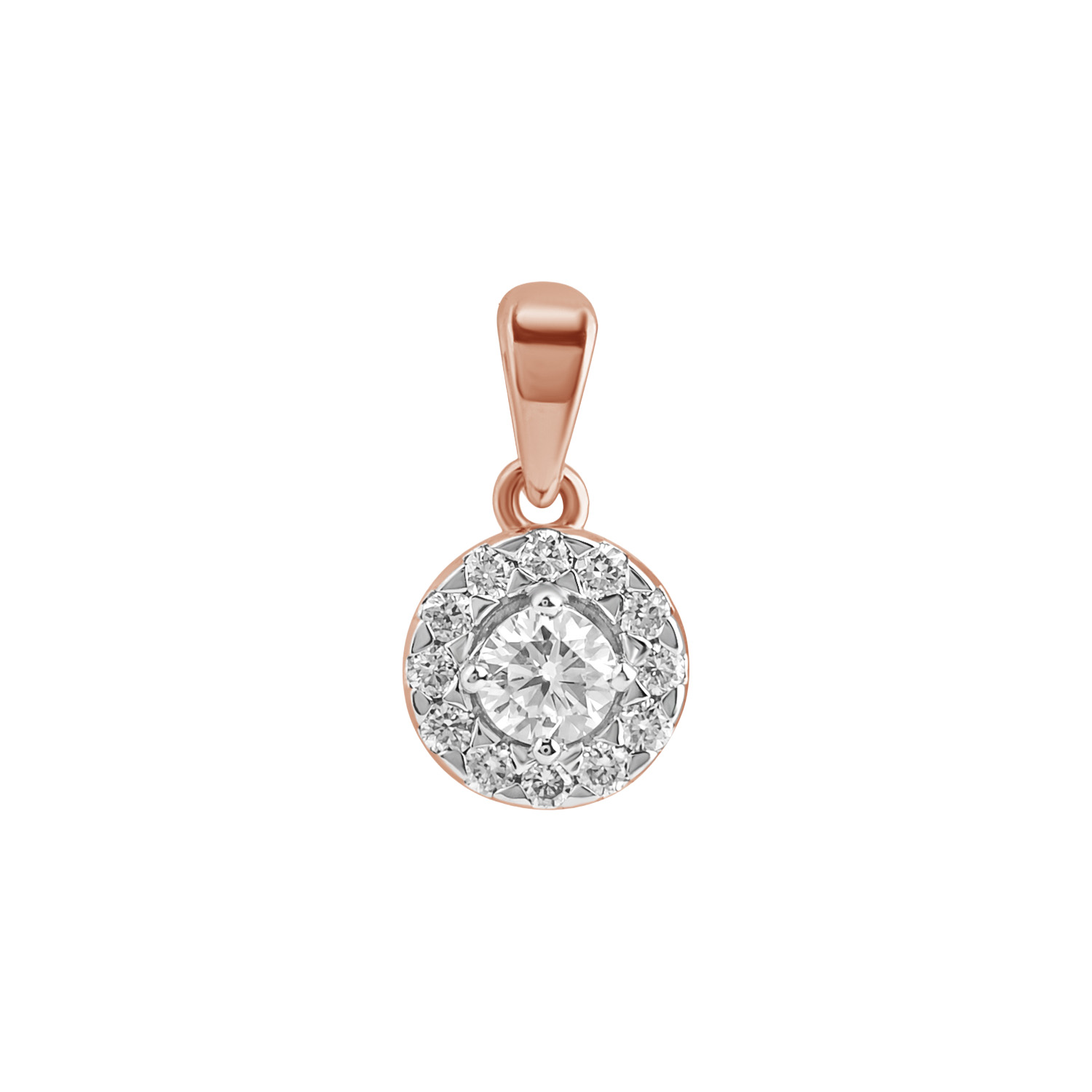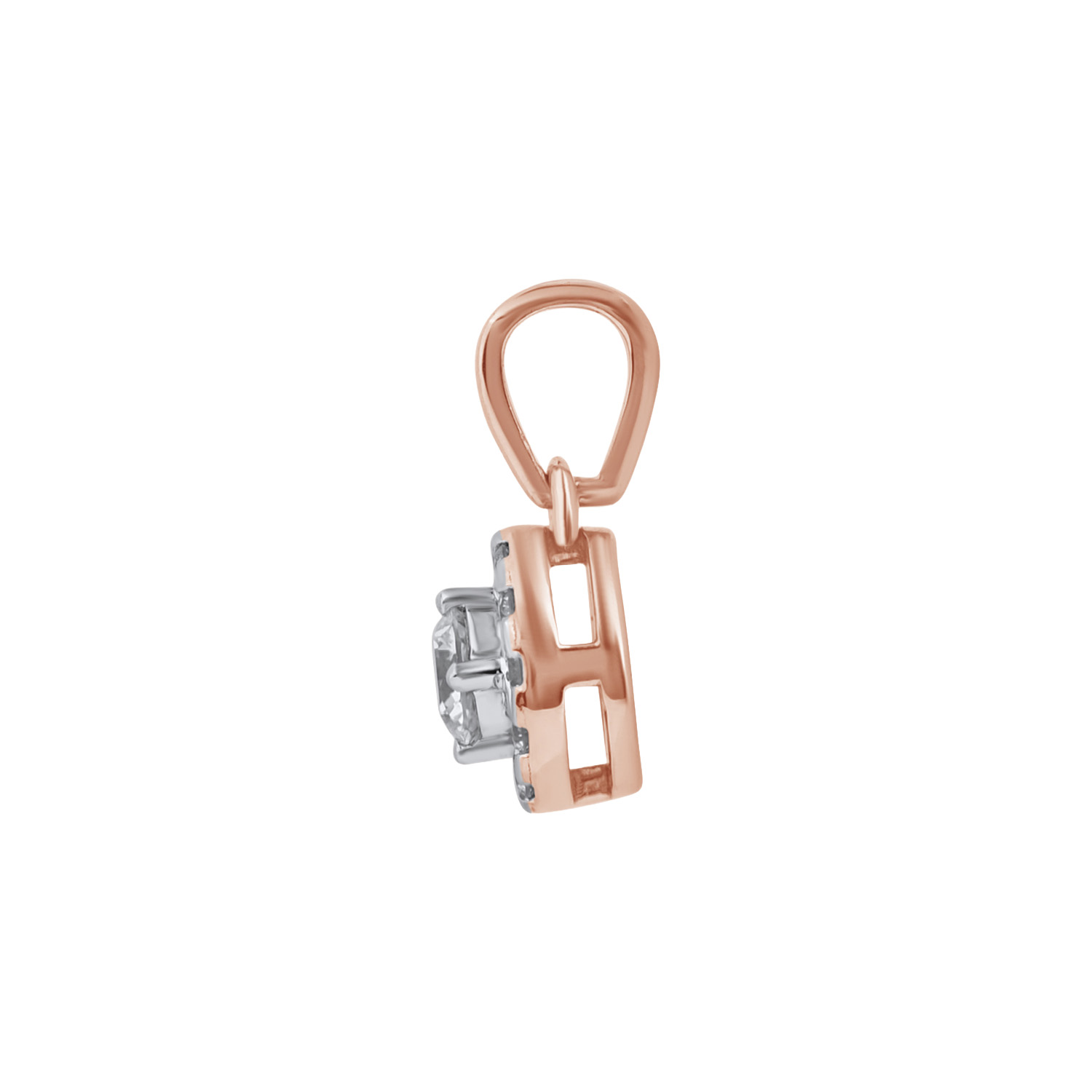 Pakabukas inkrustuotas 13 laboratorinių deimantų, kurių bendras svoris siekia 0.13 karato. Apvalios formos deimantai su briliantiniu šlifavimu sukuria subtilų, bet gyvą šviesos efektą. Visi deimantai pasižymi E–F spalva ir VVS–VS skaidrumu. Papuošalas pagamintas iš raudono aukso, kuris suteikia šilumos ir išskirtinumo.