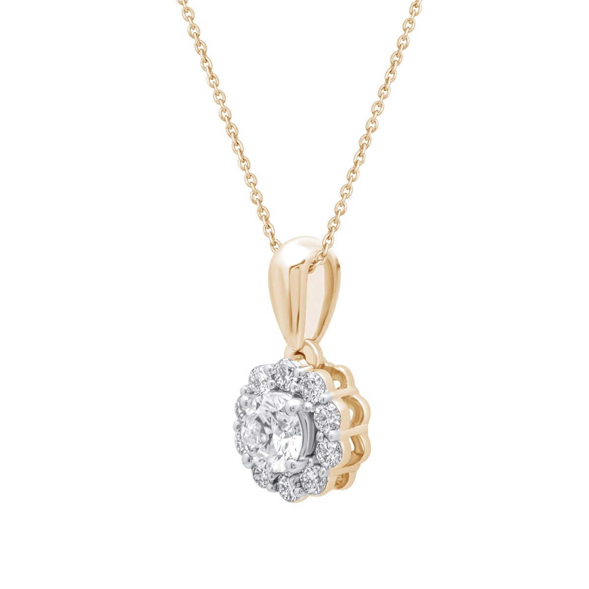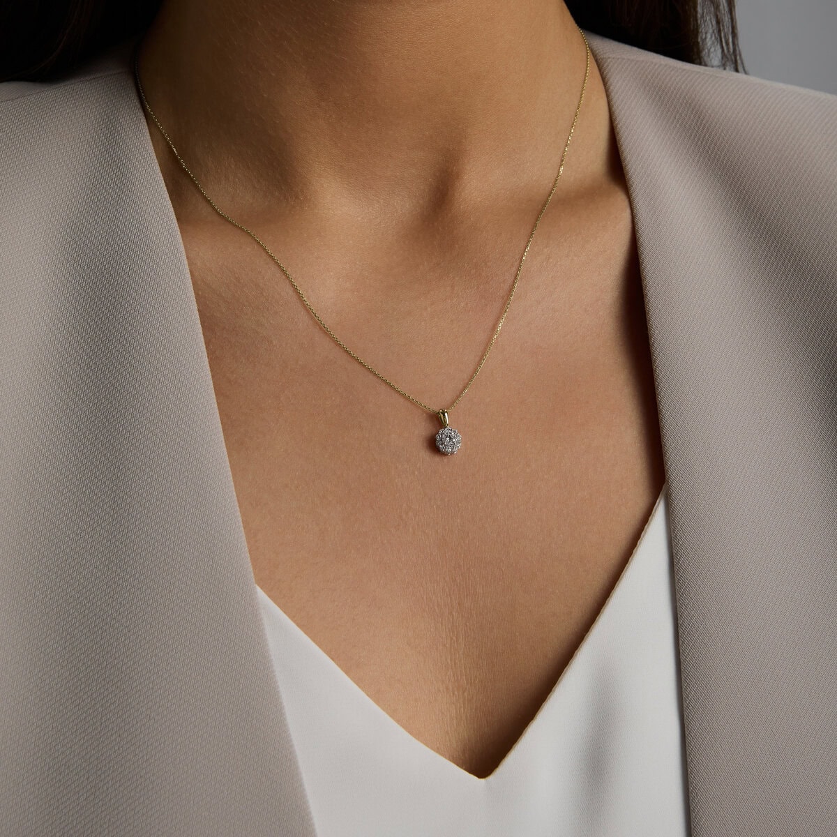 Prabangus 0.28 karato „The Charm“ auksinis pakabukas inkrustuotas apvalios formos laboratorijoje išaugintais deimantais. Aukščiausios kokybės deimantų E-F spalva ir VVS-VS skaidrumas užtikrina tobulą spindesį.