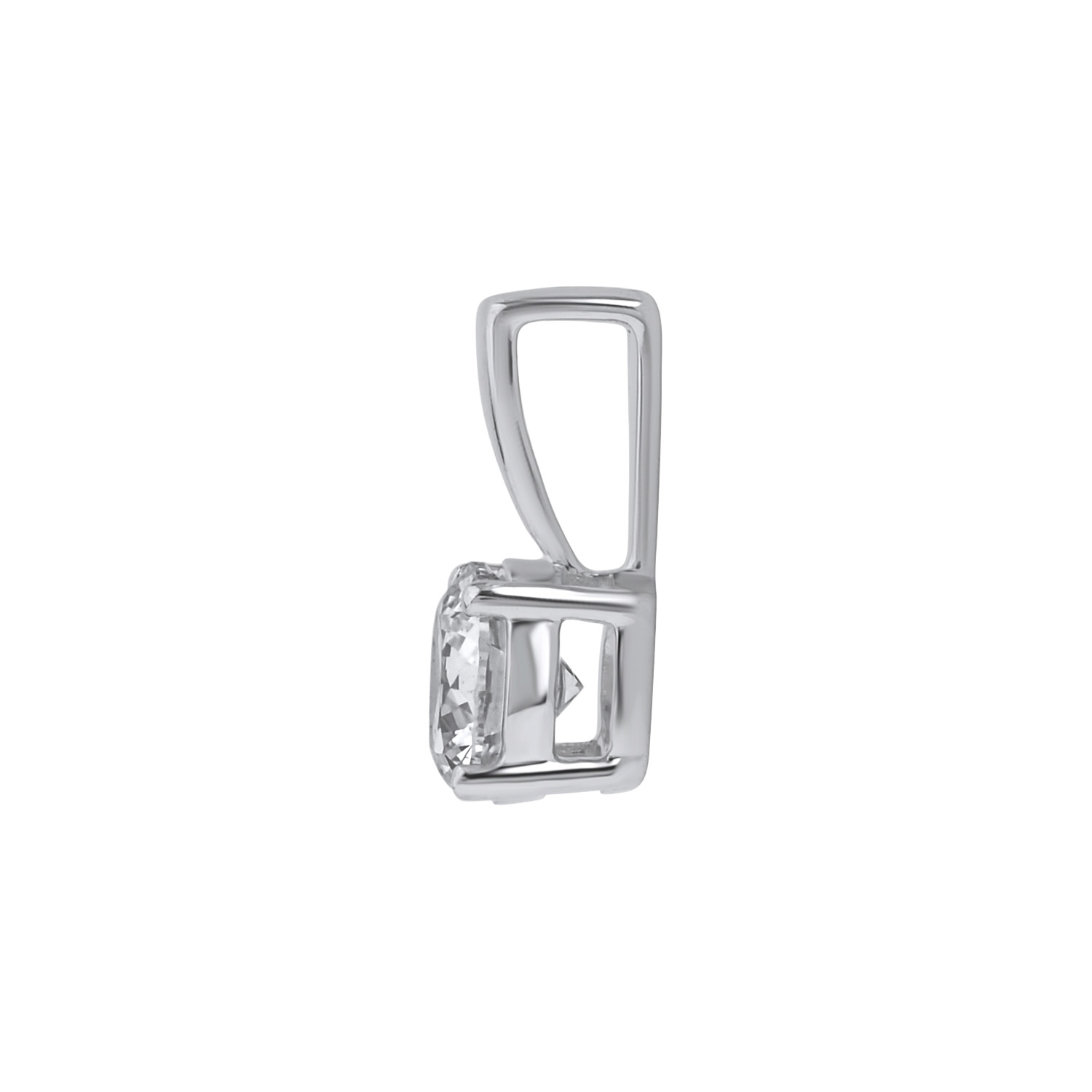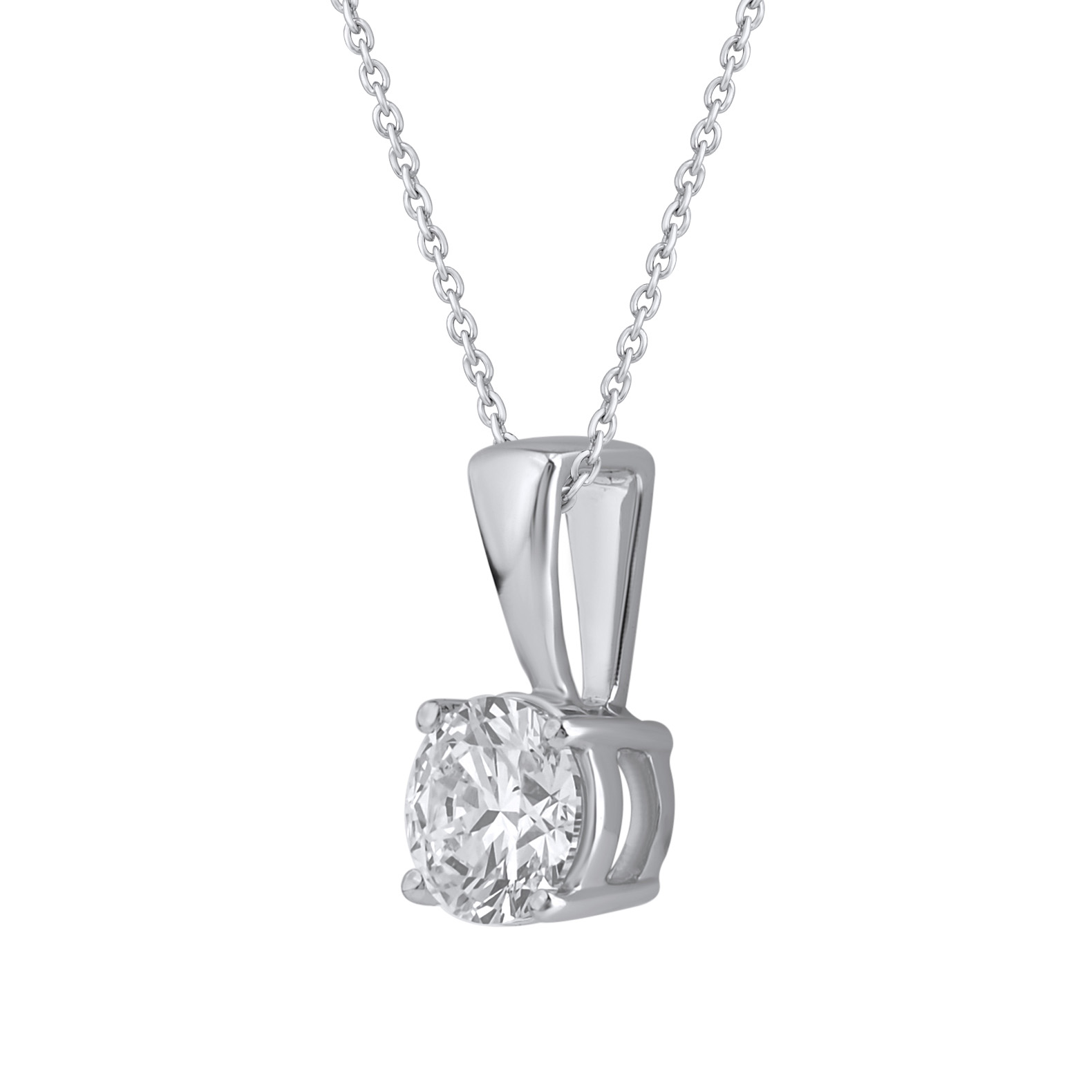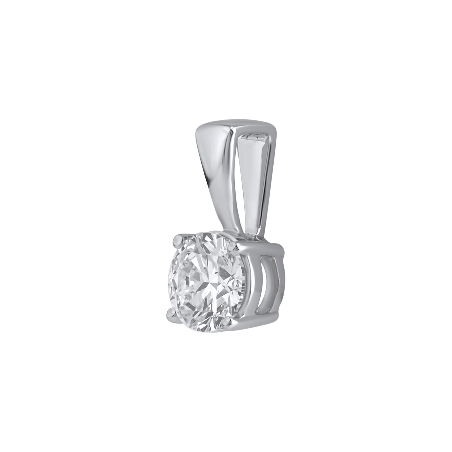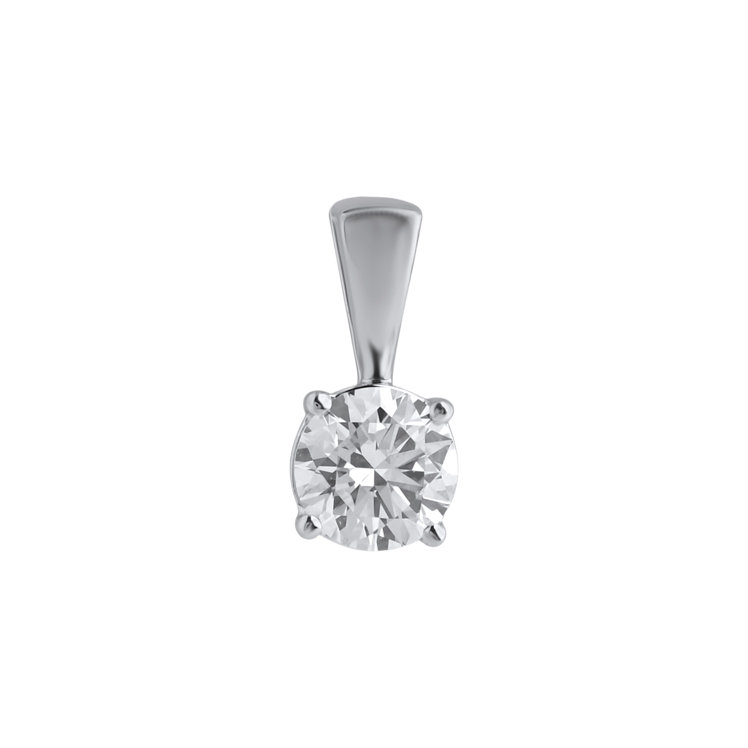 Apvalios formos deimantas su briliantiniu šlifavimu pasižymi E–F spalva ir VVS–VS skaidrumu. Pakabukas pagamintas iš balto aukso, kuris suteikia modernų įvaizdį.