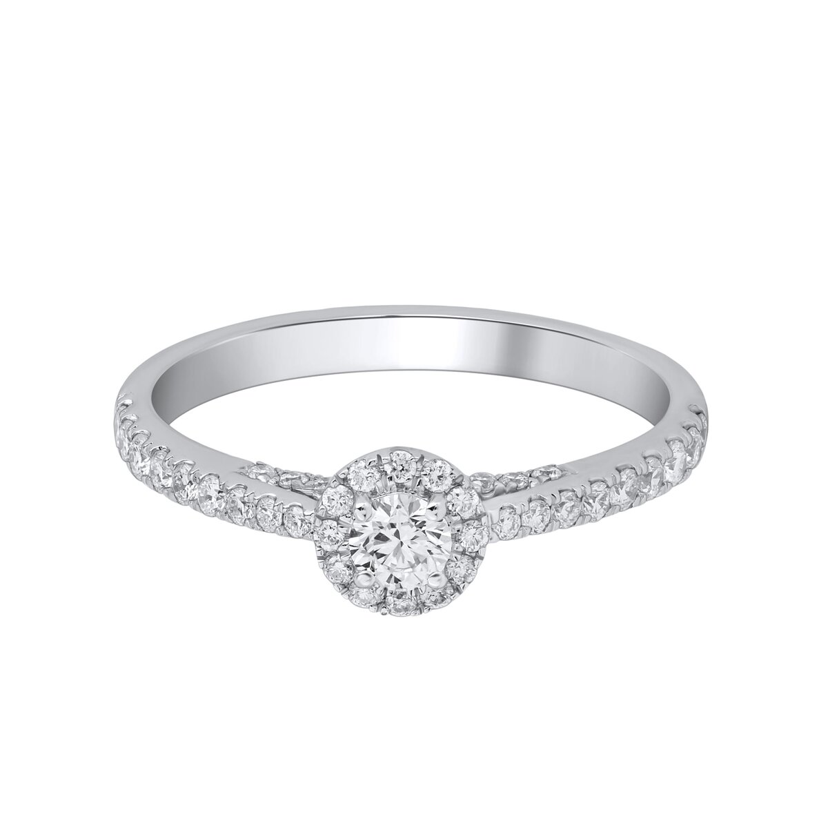 0.58 karato unikalaus dizaino žiedas su deimantu „The Allure“. Ši auksinį žiedą puošia populiariausios „Round Brilliant“ formos, 0.58 karato, išskirtinės kokybės, E-F spalvos ir VVS-VS skaidrumo laboratorijoje išauginti deimantai. Prabangus „Halo“ iš mažesnių deimantų padidina centrinio deimanto spindesį, sukuria kerinčią šviesos aurą. Šie aukštos kokybės deimantai ne tik atrodo nuostabiai, bet ir pabrėžia jūsų išskirtinį skonį bei stilių.