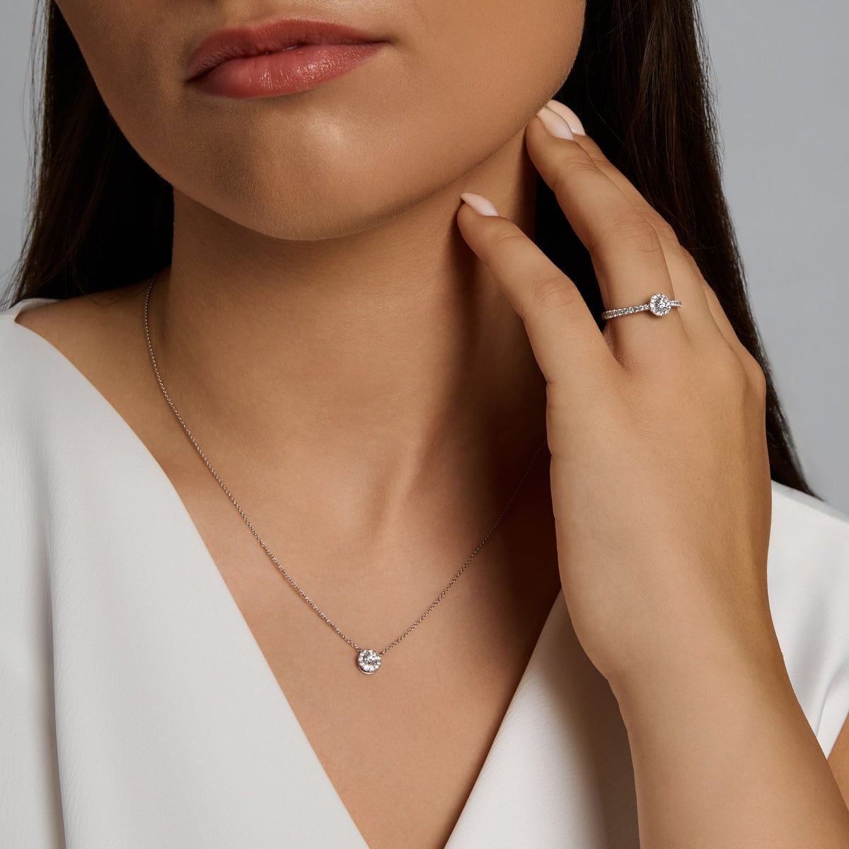 „Halo“ dizaino prabangus sužadėtuvių žiedas puikiai derės prie daugelio vestuvinių žiedų modelių ir dizainų, sudarydamas nepriekaištingą žiedų derinį.