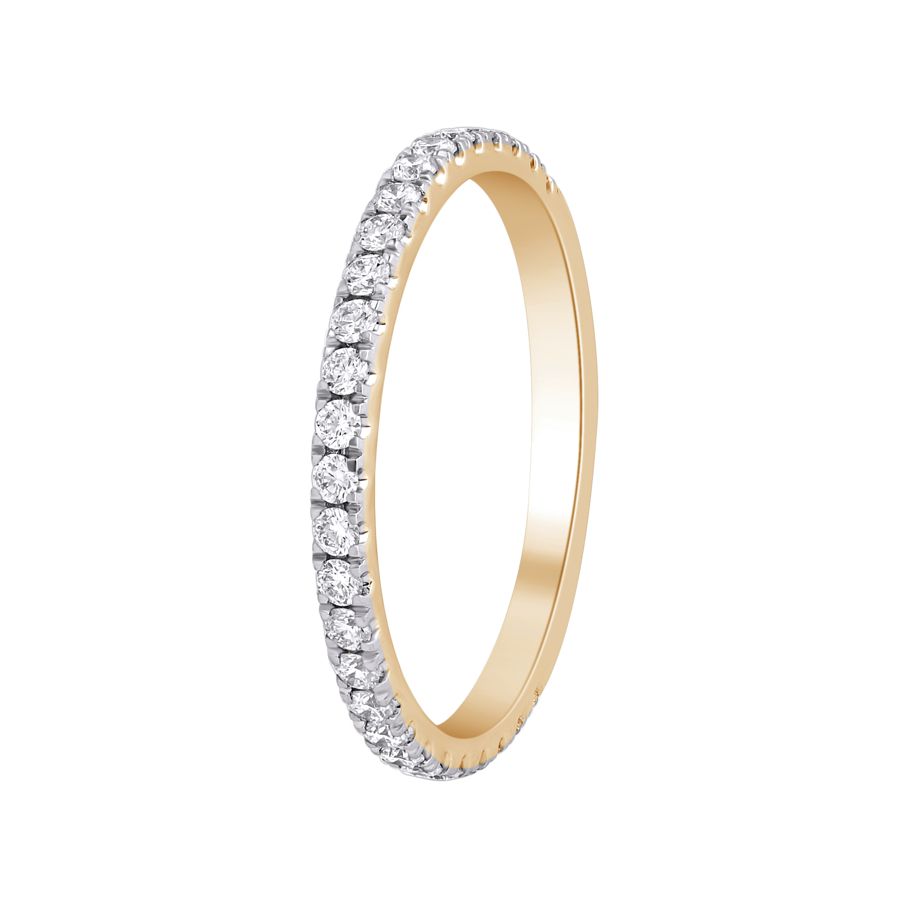 Sukurtas iš geltonojo aukso (585 prabos) ir inkrustuotas 27 laboratoriniais deimantais (0.44 ct, E–F spalva, VVS–VS skaidrumas), šis modelis vizualiai primena pilną deimantų juostelę, sukurdamas švytėjimo be pertraukos efektą.