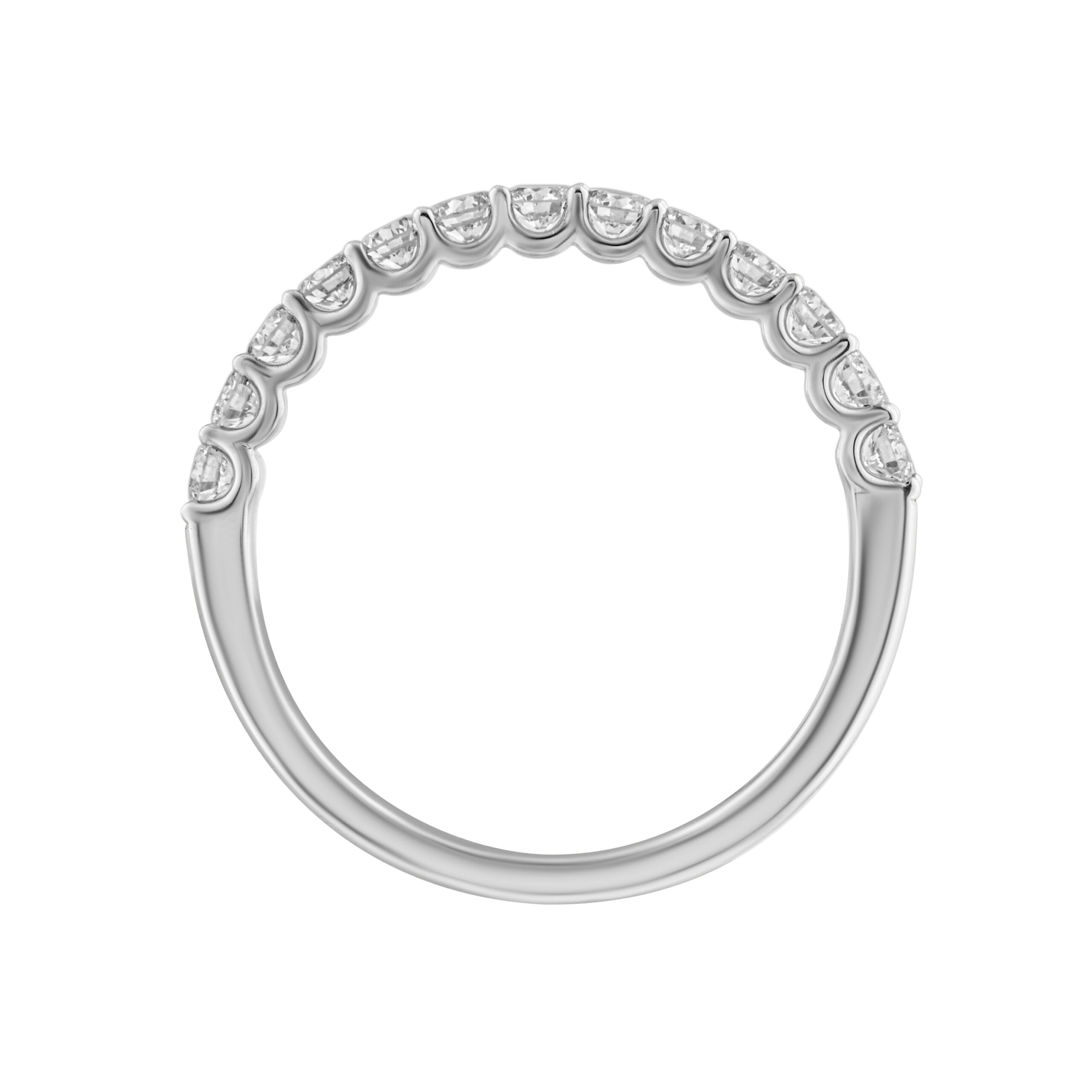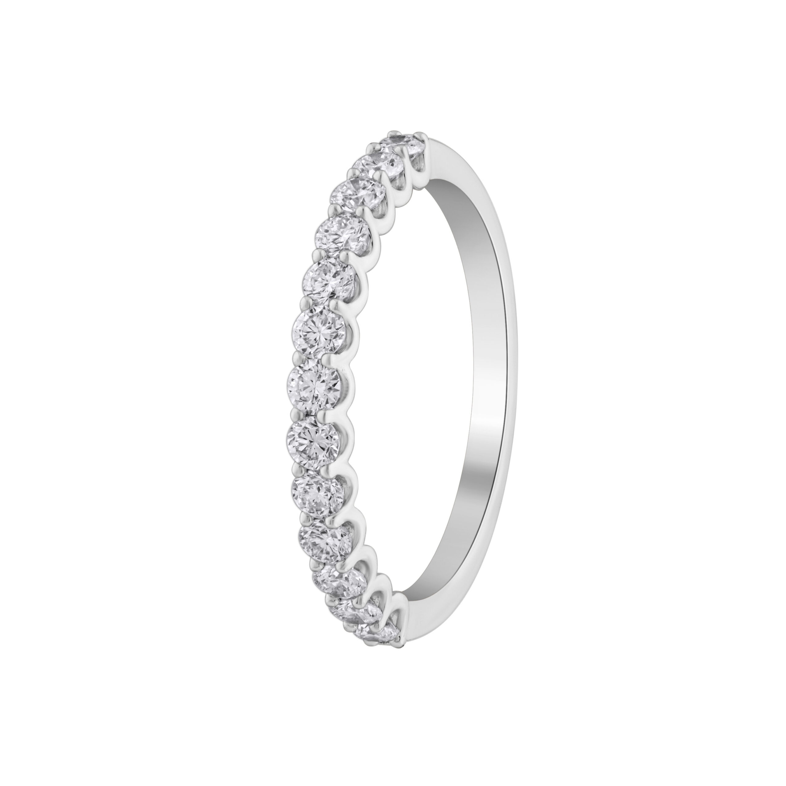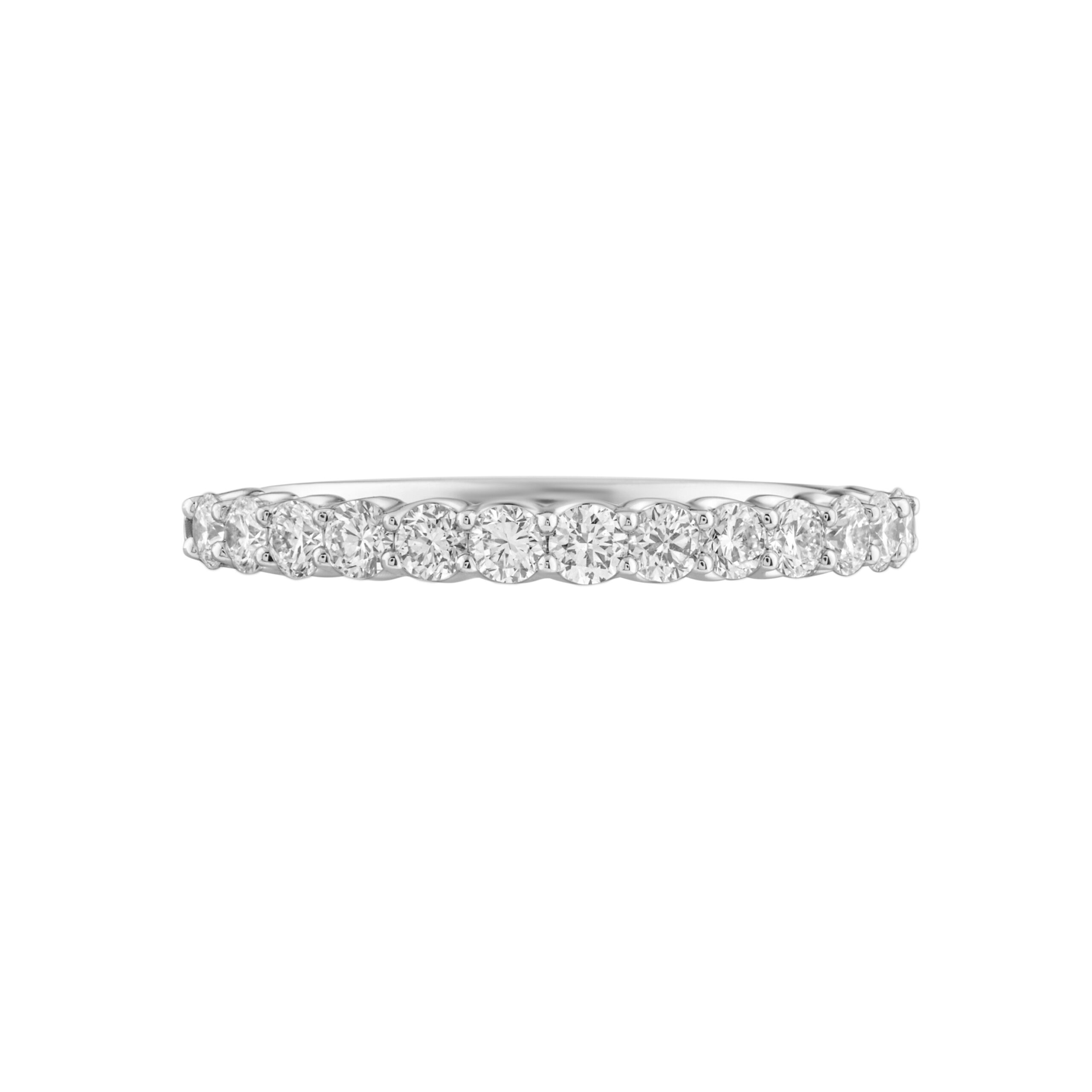 Šio tipo žiedai dar vadinami deimantinėmis juostelėmis, nes deimantai išdėstyti viena linija, sukuriant tolygų ir harmoningą spindesio efektą. Žiedas inkrustuotas 13 laboratorinių deimantų, kurių bendras svoris siekia 0.52 karato. Visi deimantai yra apvalios formos su briliantiniu šlifavimu, pasižymintys E–F spalva ir VVS–VS skaidrumu, todėl užtikrina maksimalų šviesos atspindį ir vizualinį švarumą.